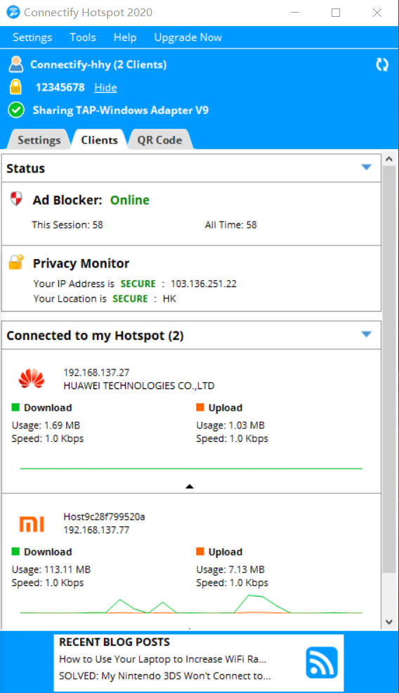 Android install Connectify Hotspot, share 翻墙-WiFi to others.
